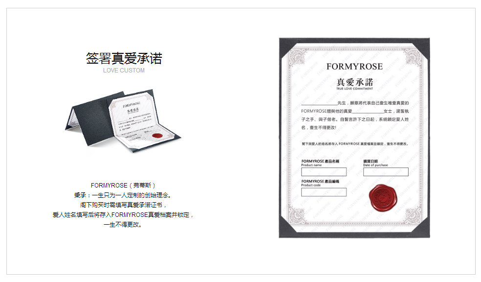 FORMYROSE官网好吗?对于初次购买的人来说会有FORMYROSE官网可靠吗这样的疑问是正常的,FORMYROSE有唯一指定的官网网站,在FORMYROSE官网上购买产品是非常可靠的。FORMYROSE不仅仅是一个传播真爱文化的珠宝品牌,更是见证真爱的最珍贵信物,FORMYROSE需实名定制,生成唯一的编码,一生只能送给一个人。