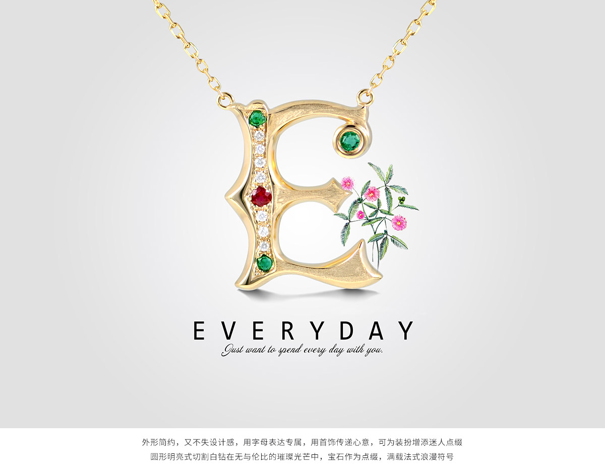 宫廷风字母E项链